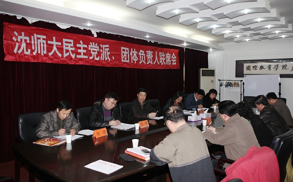 4月8日下午,校党委统战部召开了民主党派和统战团体负责人联席会。学校民盟沈师大基层委员会、民革沈师大支部、民进沈师大总支、九三学社沈师大支社、农工党沈师大支部以及校侨联、满联负责人参加了联席会。学校党委副书记林群出席会议并讲话。