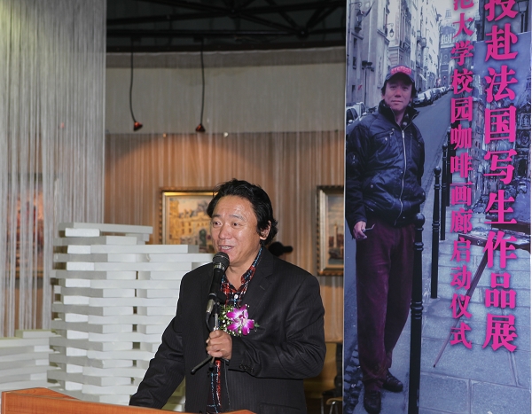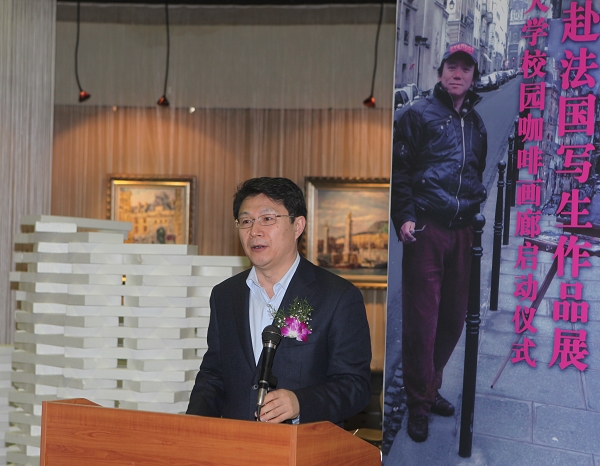 此次赴法国写生作品展,共展出张鹏教授三十余幅作品。中西绘画的嫁接、融合与贯通,使张鹏教授的作品中饱含了画面意象符号间溢出的飞扬意绪、畅达情怀和永恒的美学价值与人生价值。在创作过程中,张鹏教授有感于法国开放式的、集历史、人文、艺术于一体的教学模式,有感于在这种教学模式下所培养出的对艺术极高的感悟与认知能力。于是,张鹏教授推出了以咖啡文化为载体、以艺术作品交流为特色、旨在创建和弘扬新世纪校园文化、促进东西方文化交流的、具有鲜明文化特色的校园咖啡吧。此外,咖啡吧的建立同样是张鹏教授对学校贫困生的一次关切与帮扶。除提供了勤工俭学的机会外,咖啡吧的收入也将被捐献给学校的贫困同学们,旨在让爱心在咖啡吧中播撒,让温暖在校园中传递。