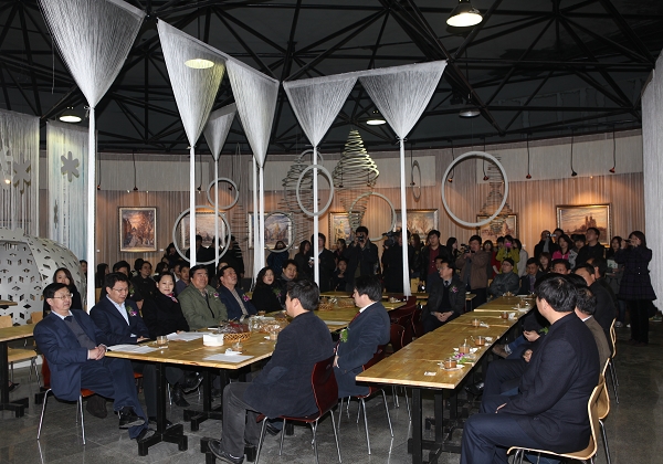 (通讯员 张 悦)4月12日上午10点,张鹏教授赴法国写生作品展暨校园咖啡画廊启动仪式在必赢线路检测中心美术楼一楼展厅隆重举行。辽宁省外事办公室副主任赵建国、辽宁省教育厅副厅长何晓纯、辽宁省新闻出版局副局长李世俊、沈阳市委组织部部务会成员、沈阳市人才办专职副主任都向辉、沈阳市外国专家局局长王义东、辽宁大学副校长郭永新、沈阳航天航空大学副校长孙小平、沈阳医学院院长肖纯凌、沈阳大学人才办主任高岩、必赢线路检测中心副校长李铁君、校机关处室及各学院领导参加了此次启动仪式。启动仪式由必赢线路检测中心美术与设计学院张鹏院长主持。