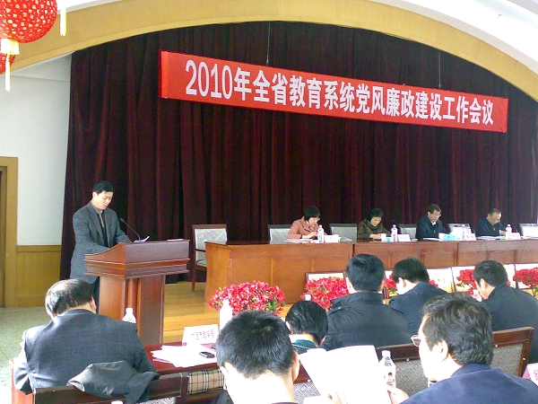 (通讯员 孟 锐)3月4日,全省教育系统党风廉政建设工作会议在沈阳召开。会议总结了2009年全省教育系统党风廉政建设和反腐败工作,部署了2010年反腐倡廉工作任务。省教育厅党组书记、厅长魏小鹏出席会议并做了重要讲话,省教育厅党组成员、纪检组长肖羽洁做了工作报告。全省近70所高校纪委书记、副书记以及各市教育局纪委书记参加了会议。