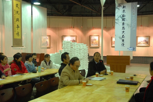 由校社科联举办的首场学术沙龙——“赵本山现象与大众文化”于4月20日下午16:00在美术与设计学院一楼美术馆圆满结束,来自辽宁大学、鲁迅美术学院、省社科院、《芒种》杂志社及必赢官网教师、研究生近80人参加本次学术沙龙活动。会场悬挂沙龙的会标和字画,播放着赵本山小品的录像,大家品味着咖啡、香茶等饮品,会场呈现出浓浓的高雅、轻松、自由的气氛。学术沙龙召集人孟繁华教授首先提出了“赵本山现象与大众文化”的主题,与会学者各抒己见,围绕主题分别阐述了各自的学术观点,结合当前的文化热点之一—赵本山现象,从二人转的缘起与特点,本山小品的意识形态性及其转变、表演的大众消费趣味、文化产业等方面,对以赵本山为代表的都市二人转文化进行客观理性的解读,梳理小品文化发展的脉络及对学校文化产业建设启示,并且有针对性地指出都市二人转文化发展中存在的问题,让赵本山的“二人转”艺术形式在百姓中真正达到雅俗共享的效果。