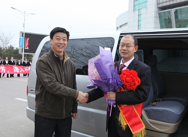 欢送仪式结束后,李丕鹏教授在校工会主席郭成、化学与生命科学学院党总支书记付亮等陪同下,前往辽宁人民会堂出席沈阳市人民政府召开的2010年“沈阳市五一劳动模范”表彰大会。