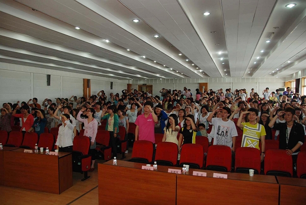 报告中,殷亚敏教授提出并解读了学习当众讲话过程中的四个难点:胆、声、情、识,并针对四个难点,总结出了一套通俗易懂、快速见效的四字方法:定、耳、舞、诀。同时以切身经历告诉我们职场成功的真谛,即三心:甘心、醉心、恒心。最后,殷亚敏教授与全场师生进行了互动,将整场报告推向了高潮。