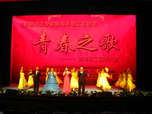 开幕式结束后,进行了“青春之歌”青年教工歌手大赛。来自15个学院的16名青年教工在此青春放歌。评委为在场教工的表演进行了仔细打分,经过激烈的比赛角逐,最后来自国际商学院的田方源和来自机关单位的王玲两位选手获得了本次青年教工歌手大赛的第一名。