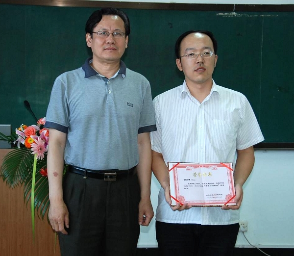 胡万德同志作为科研工作中青年馆员的代表人物,由于成绩突出,被授予“图书馆2008-2010年度青年科研标兵”荣誉称号。会上,张辉副校长向他颁发了荣誉证书。