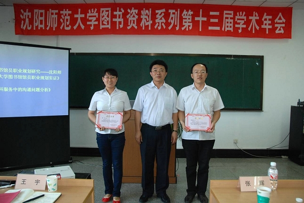会上对此次研讨会提交的论文进行了表奖。此次学术研讨会共收到论文40篇,经图书馆学术小组及邀请的省图书馆专家认真评审,共评选出一等奖2篇,二等奖4篇,三等奖6篇,优秀奖12篇。科研处郭洪渊处长、图书馆王宇馆长、迟伟凡书记分别向获一、二、三等奖的同志颁发了获奖证书。