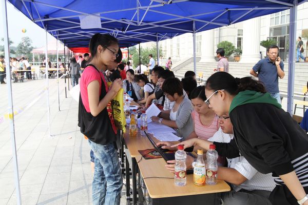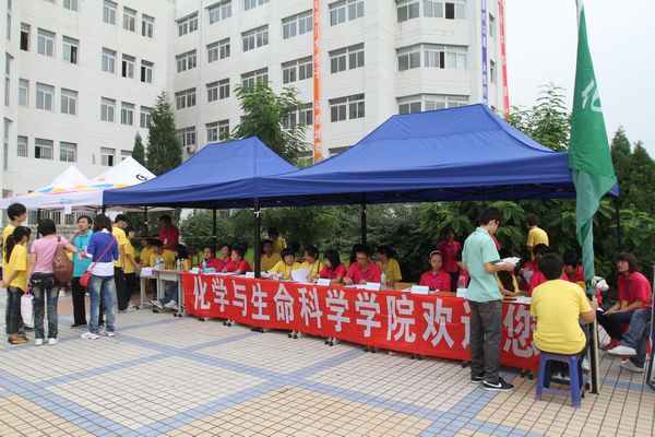 在时代广场南侧,学生处组织国旗班、勤工助学中心的学生干部迎接新同学,并为贫困生开启了“绿色通道”,为家庭条件困难的新同学提供优惠政策和生活补助,为充满爱心的师大校园更增添了和谐。