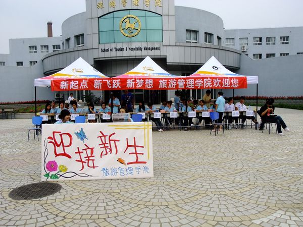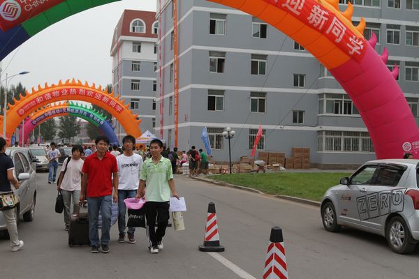 4日清晨,学校派出了10余辆校车分别开赴沈阳北站、沈阳站迎接2010级新同学。而在校园内,各个学院架起拱门,教学楼上悬挂器巨型条幅,报到处搭起了凉亭,师大校园盛装喜迎2010级新同学的到来。入校新生个个兴高采烈,在家长、朋友的陪同下,阔步昂首,一边欣赏校园的美景,一边前行,踏上了人生最重要的一段旅程。