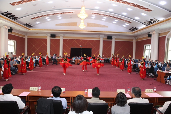 戏剧学院的学生们在表演富有特色的中国舞蹈