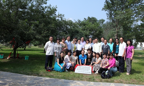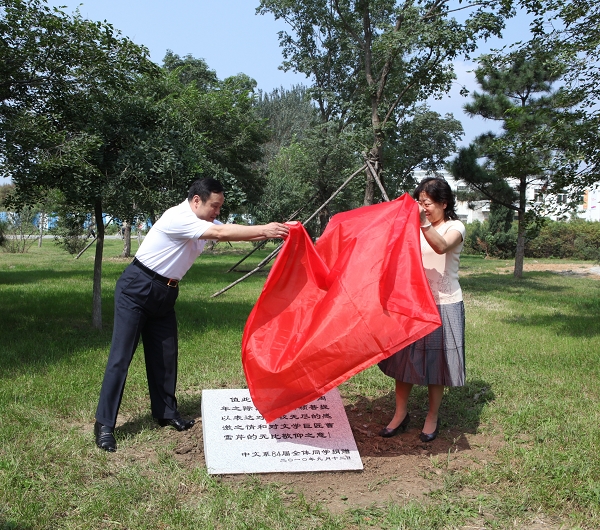 校友们还参观了古生物博物馆,并在图书馆门前合影留念。在献给母校的菩提树前,举行了捐赠揭碑仪式,校友们轮流为菩提树培土、浇水,把对母校的爱与祝福永远扎根在了母校最醒目的地方,扎根在了每个沈师校友的心里。