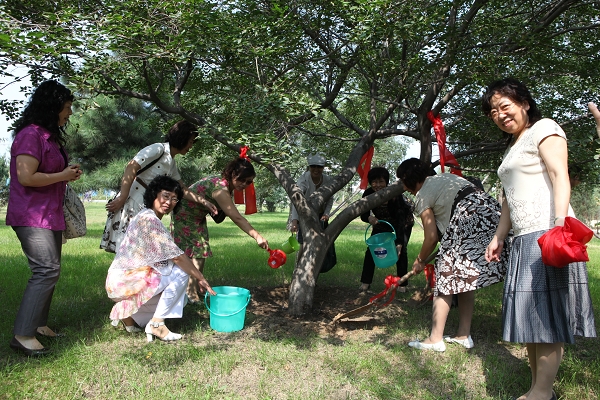 校友们为菩提树培土、浇水