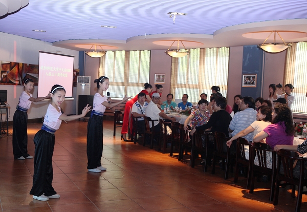 会议期间,校友们欣赏了由旅游管理学院的茶艺队表演的茶艺表演、戏剧艺术学院和附属艺术学校的师生们表演的京剧演唱。校友代表朗诵的中文系80级校友集体创作的贺辞——《中文80,我们的精神家园》将团聚会推向了高潮。最后,赵慧平院长、文学院学生代表以及时任80级中文系辅导员的王贵忱老师相继发了言,声情并茂、语重心长又不乏诙谐幽默,令校友们感到了如家的温馨,每个人的脸上都始终挂着灿烂的笑容。