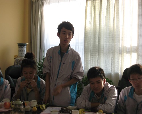 9月19日下午15点在外国语学院会议室,2010年中秋茶话会正式开始。本次茶话会的师生代表有:外国语学院院长范革新教授,党总支书记、副院长邵学军老师,党总支副书记、副院长王艳彪老师,团委书记崔宁宁老师及2010级专职辅导员赵颖老师。参加本次茶话会的贫困生代表共26名,分别来自2010级英语、翻译、日语、俄语、法语五个专业。茶话会上,各位领导与特困生代表亲切交谈,一起品尝精心准备的水果与月饼,现场气氛祥和而融洽。