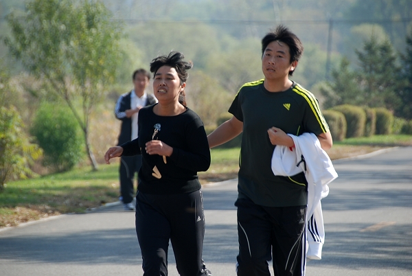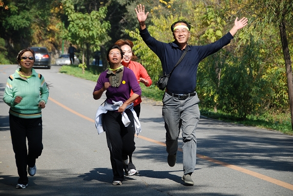 接力过后,是十公里个人赛的争夺。由于之前的接力比赛体力消耗较大,进行到3、4公里时,许多同志便已体力透支、大汗淋漓,即便如此,大家仍然紧咬牙关,继续前行。值得一提的是,李延红、郭春山、张淑萍等几位老同志始终冲在第一阵营,令许多年轻馆员望尘莫及,着实令人敬佩。在大家的坚持下,比赛进行到2小时8分钟时,参赛队员全部到达终点,无一人掉队。此时,名次已显得并不重要,每位馆员的脸上都洋溢着胜利的喜悦,因为他们成功的战胜了自己、挑战了极限,身后十六公里的蜿蜒山路就是对他们最好的肯定。他们用行动完美诠释了图书馆精神。