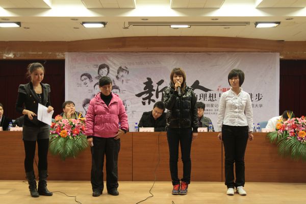 随后《华商晨报》明星记者、编辑逐一上台亮相,其中明星记者刘滨、张天潘、姚琦东,明星编辑刘凌、胡笑丰更是针对同学们的新闻采访、编辑等方面做了精彩的演说。明星记者、编辑们的经典幽默、别具一格的演说使现场不时爆发出热烈的掌声。