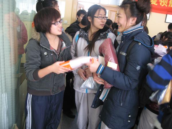 本次“让爱领航”外国语学院爱心超市活动在大家温暖的笑脸中圆满地落下了帷幕。爱心超市活动是建立在冬季御寒物品献爱心活动基础上的一次送温暖活动,所发放的礼物是由学院出资为特困生们购买的保暖内衣及56位热心老师赠送的107件衣物。学院委托专门机构将老师赠送的衣物进行消毒、清洗,包装。虽然具体到每位同学身上,这些东西很单薄,但是相信大家一定会从中感受到院领导老师对特困生们深切的关心与希望。大家定会怀揣着这份温暖的关怀,勇敢地迎着前方的风雨坚定向前!
