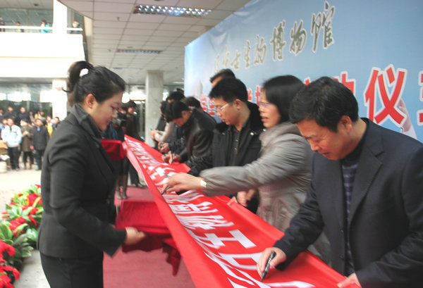仪式最后,由林群副书记宣布辽宁古生物博物馆大学生志愿者招募工作正式启动。伴随着礼花的飘逸,与会来宾和同学们在印有“辽宁古生物博物馆大学生志愿者招募启动仪式”的条幅上签字留念。整个仪式气氛热烈,洋溢着必赢官网大学生们致力于志愿服务的热情。 (通讯员 刘森 王雅君)