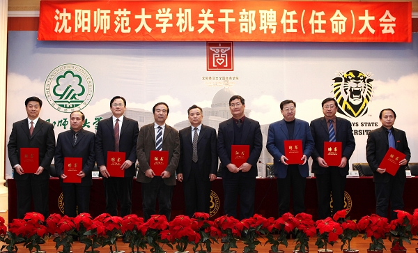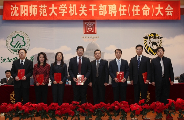 会上,学校党委书记于文明宣读了沈师大委[2010]72号、73号和74号文件。任命林群、陶秀伟、张辉、关松林、李崇春、李铁君、夏敏等7位校领导为七大部部长;校长助理刘中海为工会主席。