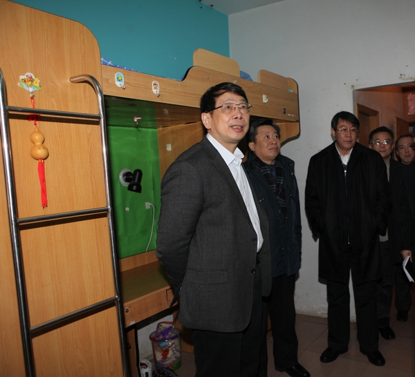 视察中,陈希副书记走进图书馆、学生寝室和学生食堂,与大学生们亲切交谈,详细询问了大学生的学习和生活情况。(摄影 梁玉玺)