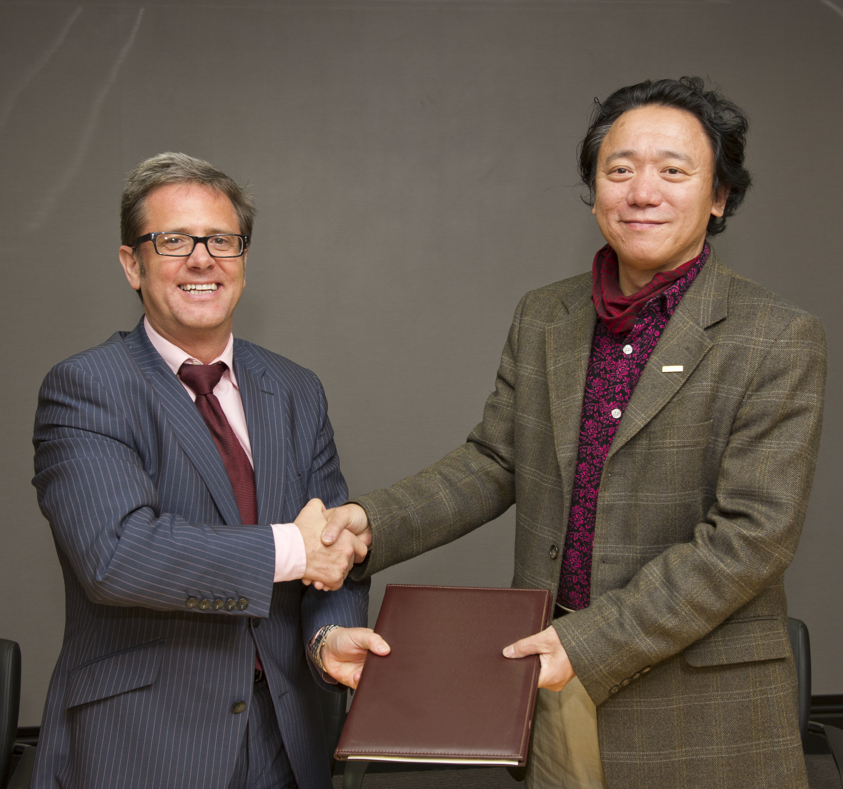 张鹏院长与谢菲尔德哈勒姆大学副校长Cliff Alan交换已签署好的合作协议文本