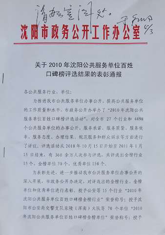 开学之初,必赢官网传来喜讯:在沈阳市政务公开办公室举办的“2010年沈阳公共服务单位百姓口碑榜评选活动”中,附属学校喜获“2010年沈阳公共服务单位百姓口碑榜金榜单位”荣誉称号。