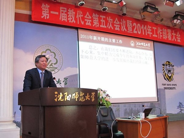 他说,2011年是全面贯彻全国及辽宁省教育工作会议精神和中长期教育改革和发展规划纲要,以全面提升学校核心竞争力为重点,大力加强内涵建设,不断提高办学质量,推动学校各项事业又好又快发展,为完成“十二五”发展规划目标的实现奠定基础的重要开局之年。学校将重点做好以下九方面工作:一是进一步深化专业建设和人才培养模式的改革;二是进一步加强学科建设和科研研究工作,三是不断加强国际交流与合作,提高对外汉语培养质量和水平;四是进一步强化服务基础教育的意识和能力;五是科学规划学校未来发展,不断完善现代大学制度建设;六是全面做好60周年校庆及校园基本建设工作;七是党建工作;八是进一步加强师资队伍建设;九是进一步完善财政和资产管理。