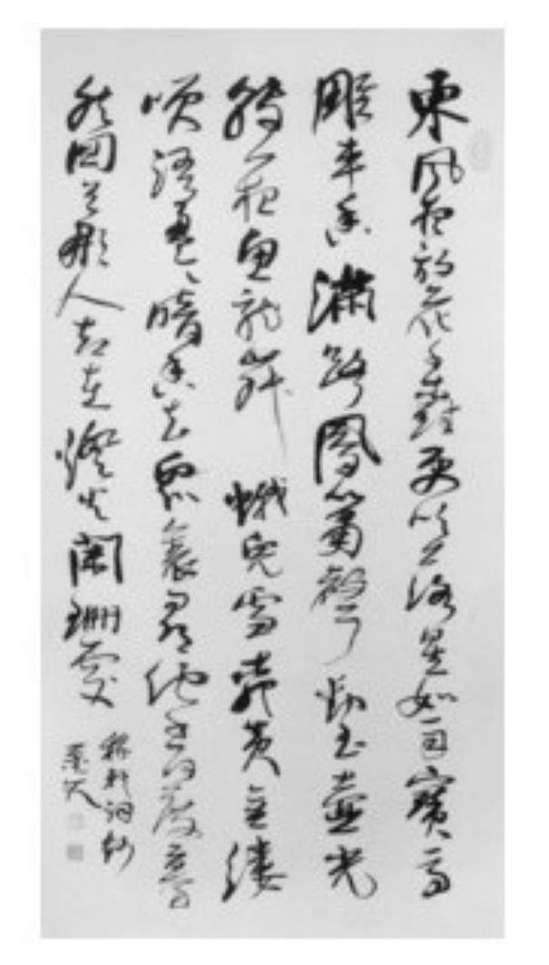 “董文的努力仍然是无穷期的,但是,他能集书法创作、理论、教学于一身,全面发展,这也决定了他今后将会比别人更完善和丰富。这样的书法家类型,对于当代书坛是重要的,对于未来世纪的书坛而言,也是书法家发展成长的方向。