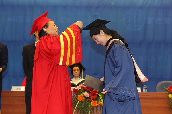孙绵涛教授为硕士学位获得者颁发学位证书并拨正流苏