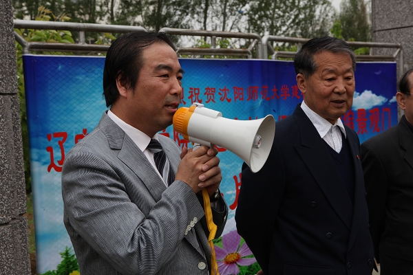 当仪式结束的时候,所有的校友都集中在微缩景观门前合影留念,有这样一位校友被众人拥簇,吸引了众多媒体的目光。这位德高望重的老人就是辽宁教育学院的老院长杨学谅,“我要祝贺母校发展速度如此之快,和过去的沈师相比,可以毫不夸张地说真正是‘一个天上,一个地下’。也祝愿沈师为辽宁经济发展建设做出更大的贡献。”