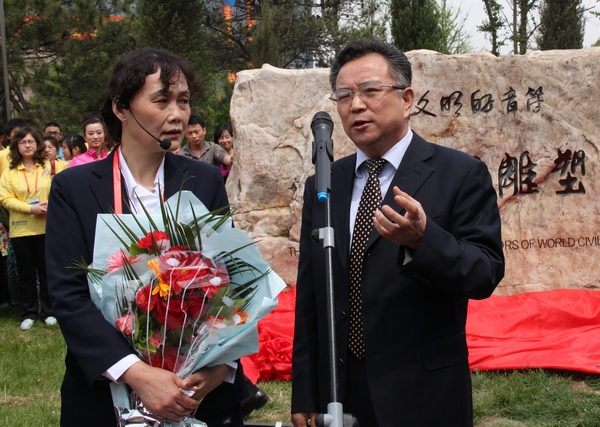 赵大宇校长、张德祥校友为司徒安雕塑园揭幕