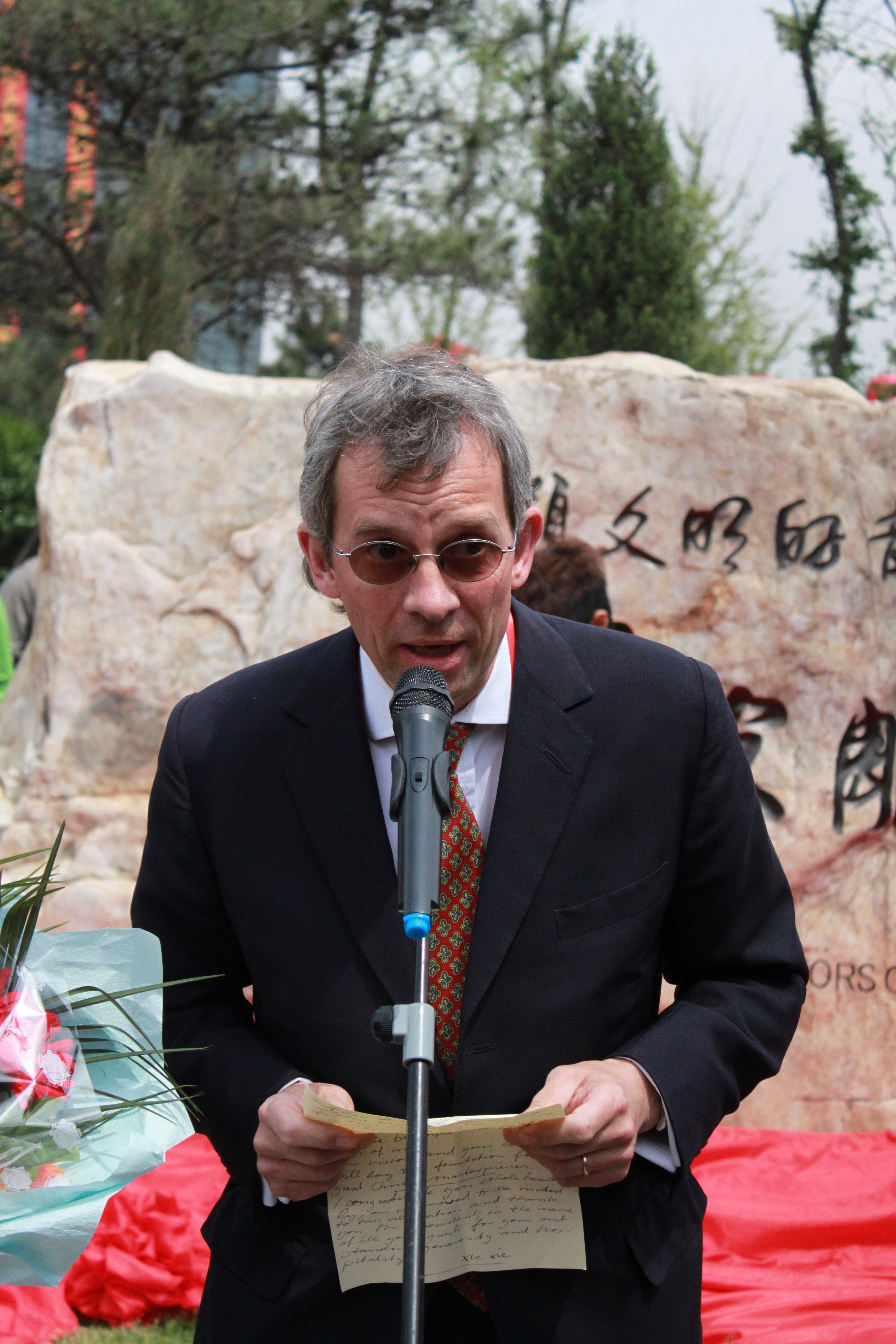副校长夏敏主持了此次揭幕仪式。校长赵大宇、司徒安先生、英国皇家雕塑协会主席斯达姆致辞分别发表了致辞。斯达姆先生表示:“今天是沈师的生日,我们向校长表示祝贺,我们不仅是在建雕塑园,也是在建沟通世界文化的桥梁。”