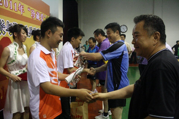 最后一场比赛是由赵大宇校长对阵毕业生代表队种子选手赵娜。11:6、8:11、9:11、11:13……小小的乒乓球在球桌的两边传递,传递出了校领导对毕业生的关怀。
