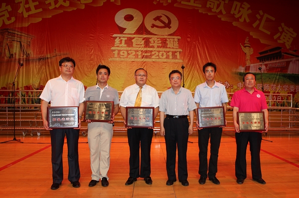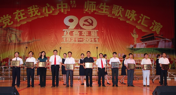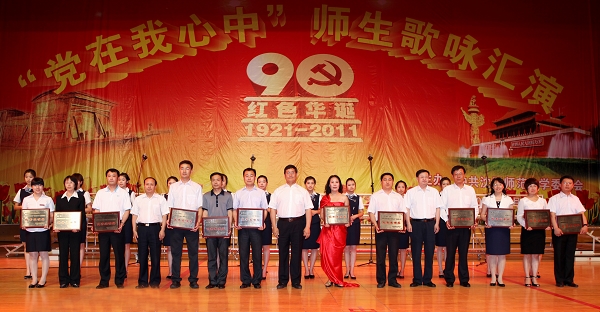 汇演开始前,校长赵大宇,党委副书记林群,副校长陶秀伟、李崇春、李铁君、夏敏,校长助理刘中海分别为“党在我心中”师生歌咏比赛中荣获表演奖、优秀表演奖、特别表演奖和最佳表演奖的单位颁奖。