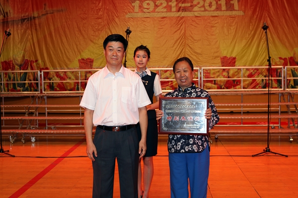校长赵大宇为获得“最佳表演奖”的单位颁奖