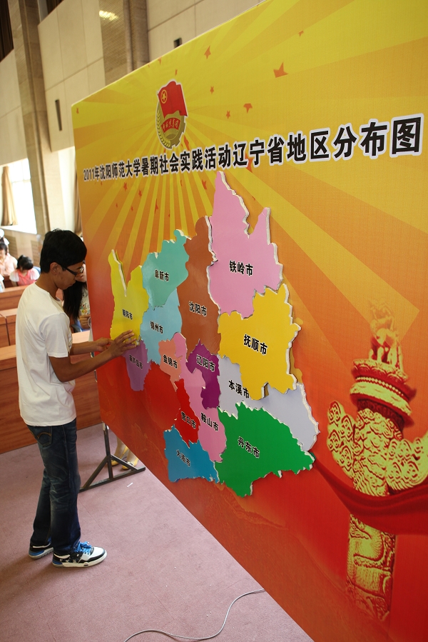 各个实践团队代表拼制完成2011年必赢线路检测中心暑期社会实践活动辽宁省地区分布图