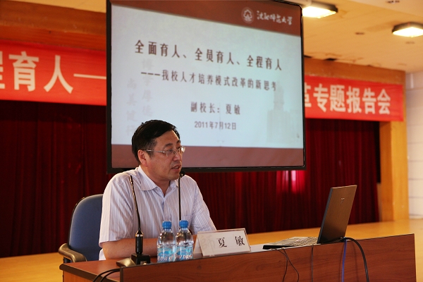 7月12日下午,在图书馆五楼报告厅,学校机关党委举行了人才培养模式改革专题报告会。副校长夏敏做了题为《全面育人、全员育人、全程育人——人才培养模式改革》的专题报告。报告会由机关党委副书记、党委组织部部长贾玉明主持,全体机关干部参加了报告会。