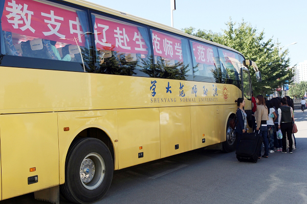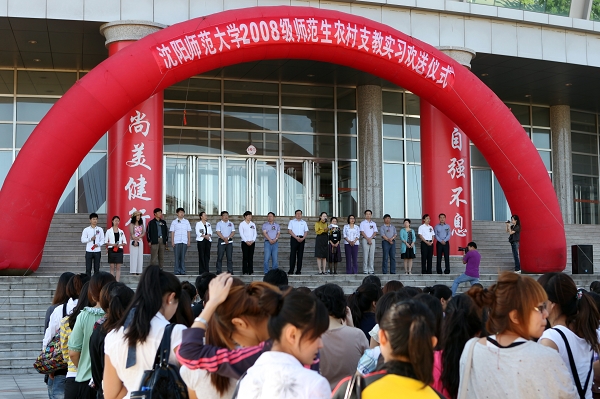 最后,副校长夏敏颁布出发令,全校9个学院11个专业,三百余名08级师范生迅速、有序地登上校车,奔赴北票市、辽中县、本溪县的农村实习学校,进行为期10周的农村支教实习。