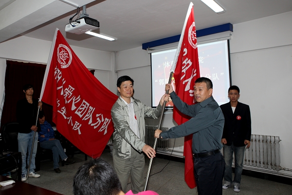 党委组织部部长贾玉明为“教职工小队”授旗