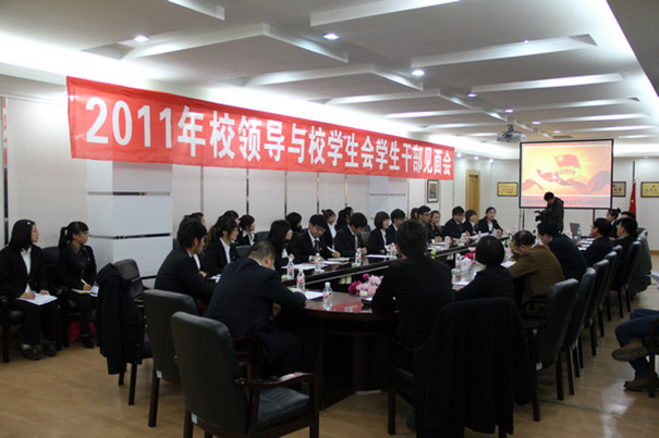11月16日,2011年校领导与校学生会学生干部见面会在机关楼303会议室隆重举行。副校长夏敏,组织部部长贾玉明,校务办公室主任邵永运,组织部副部长张立新,招生就业指导处处长杨杰、学生处副处长刘亚军及学生干部代表参加了见面会。会议由校团委书记赵东方主持。