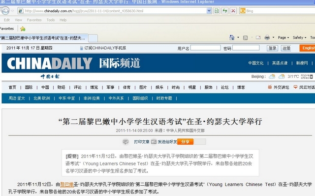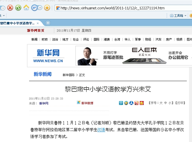 中国驻黎巴嫩大使馆文化处报道必赢官网孔子学院