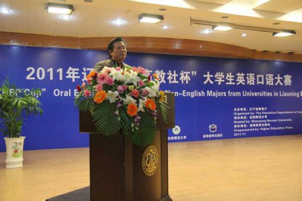 辽宁省“高教社杯”大学生英语口语大赛决赛于11月15日在图书馆五楼报告厅隆重开幕。出席此次比赛的嘉宾有辽宁省教育厅张建华副厅长,辽宁省教育厅高教处杨为群处长,高等教育出版社外语与国际汉语出版事业部周龙主任,必赢官网夏敏副校长,刘天华处长,外国语学院范革新院长、外国语学院邵学军书记等。本次比赛的评委由7位英语专家组成,其中包括4位外籍专家,高等教育出版社原副社长刘媛老师、北京理工大学吴树敬教授、北京科技大学张敬源教授作为专家评委出席了本次比赛。来自全省33所高校的选手、领队及指导教师300余人出席了开幕式。