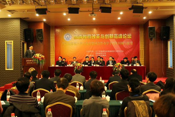 夏学英院长简要介绍了十年来旅游管理学院在办学条件、学科建设、师资队伍、人才培养等方面所取得的成绩。她说,这主要得益于各方的支持及校企合作办学的平台效应。合作办学使学院形成了资源共享、优势互补、多层次、多专业相互促进和协调发展的新格局,推动了学院跨越式发展。学院已由最初的8名教师,200名学生的“系”,发展为拥有8000平米教学大楼,2000多名师生的大“院”。先后被辽宁省教育厅和辽宁省旅游局批准为“辽宁省旅游业紧缺本科人才培养、培训基地”和“辽宁省高级旅游管理人才研修基地”。旅游管理专业还先后获批为辽宁省“省级示范专业”、国家级“高等教育特色专业建设点”。十年来,为社会输送了大量紧缺人才,为辽宁旅游事业发展做出了应有贡献。