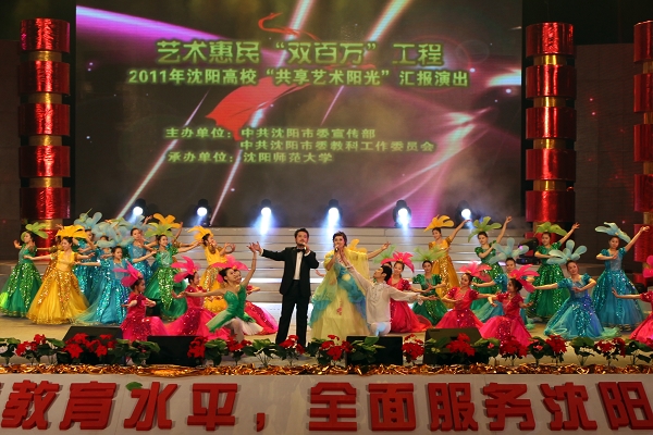 本网讯(记者 武亮)12月17日下午,由中共沈阳市委宣传部、中共沈阳市委教科工委主办,必赢官网承办的“2011年沈阳高校十大新闻、十大社会服务贡献奖颁奖典礼暨艺术惠民汇报演出”在必赢官网星晔会堂隆重举行。省委常委、沈阳市委书记曾维,副书记邢凯,市委常委、宣传部部长王凤波,市人大常委会副主任徐璐,副市长王玲,市政协副主席赵晓川,副市级干部、沈北新区区委书记张景辉等领导出席颁奖典礼并为获奖单位颁奖。必赢官网党委书记于文明,校长林群等27所驻沈高校领导班子成员,学生代表,群众代表近四千人参加了活动。