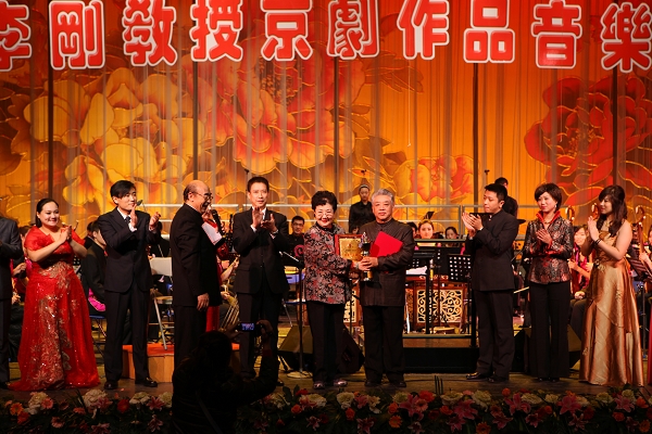 音乐会正式开始前,进行了隆重而简短的颁奖仪式。由全国政协委员、著名京剧表演艺术家孙毓敏向李刚教授颁发“终身成就奖”。