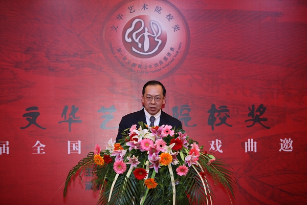 辽宁省文化厅副厅长赵奎伟,大赛评委会主任刘秀荣先后讲话。上海戏剧学院戏曲学院副院长王立军代表参赛院校,中国戏曲学院附属中等戏曲学校郑轶代表参赛选手先后发言,并预祝大赛取得圆满成功。