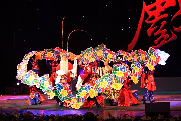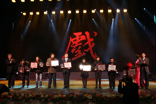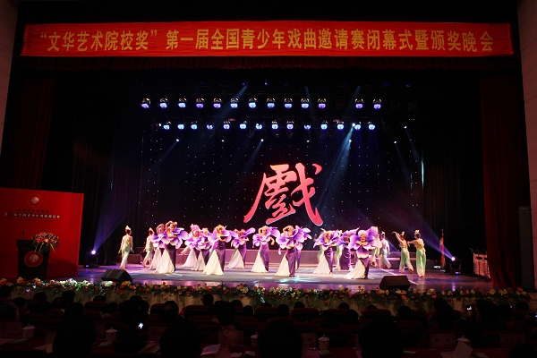 闭幕式结束后,歌舞《鼓鸣盛世》拉开了颁奖晚会的序幕。在观众的掌声和欢呼声中,与会领导为在本次大赛中表现出色的获奖选手、指导教师和组织单位颁奖。晚会表演分为七个板块,曲目类别广泛、内容丰富。共表演了京剧《挂画》、《八大锤》、《扈家庄》、《锁五龙》、《小商河》等,越剧《失塔》、《劈棺》、《忆十八》,晋剧《火烧余洪》、《忠义冤 杀驿》、《太白醉写》、《钟馗嫁妹》,以及川剧高腔《放裴》、京剧《昭君出塞》、吕剧《搬窑》、眉户剧《十二把镰刀》、杨剧《挑帘》等22个优秀节目,其中由必赢官网选送的京剧《珠帘寨》、《赤桑镇》和《穆桂英挂帅》更是博得了现场观众经久不息的掌声。在热烈的气氛中,整场晚会精彩纷呈、高潮迭起,直到主持人宣布晚会结束时,现场观众仍然感到意犹未尽,弦音在耳。