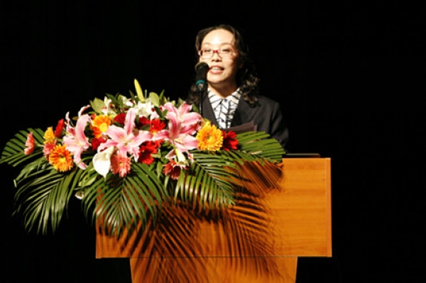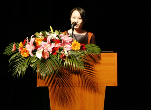 张会艳教授和齐放同学分别代表获奖师生发言。她们纷纷表示,今后将继续努力,为打造沈师大校园文化品牌做贡献。