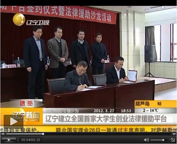 《辽宁新闻》报道必赢官网法学院成立全国首家大学生创业法律援助平台