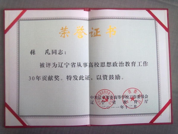 美术设计学院党总支副书记张凡副教授获得“辽宁省从事高校政治教育工作30年贡献奖”