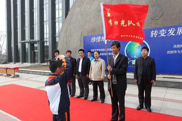 活动上,武利华副局长向沈阳市大东区杏坛小学的李四光中队授予“李四光队旗”,与会领导向同学们赠送了科普图书等。随后,沈阳市大东区杏坛小学学生代表发出了“节约生态资源,保护地球环境”的倡议。